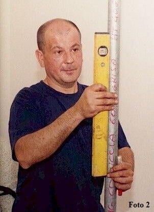 Accostato il pianerottolo all'orlo del foro nel punto di sbarco, verificate che l'asse centrale sia perfettamente verticale, utilizzando un filo a piombo od una livella (foto 2).