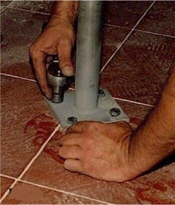 Il fissaggio della prima colonnina, col suo piedino regolabile, richiede un po' di pazienza.