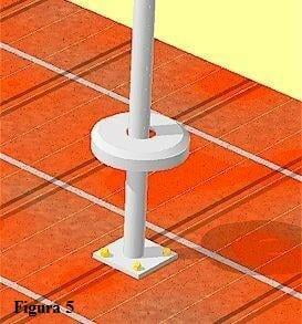 A questo punto potete togliere il pianerottolo, spostare l'asse centrale, realizzare i fori nel pavimento in corrispondenza dei punti segnati, rimettere in sede l'asse senza più la guida del pianerottolo e provvedere al fissaggio mediante tasselli ad espansione o perni. L'asse starà in piedi da sè nel punto giusto (Foto 3).