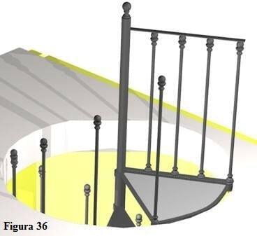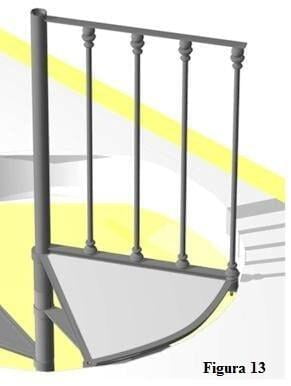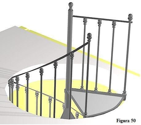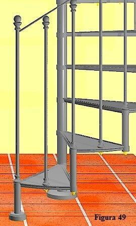 Nella balaustra è già inserito il corrimano, più un piatto di portata alla base, che è tenuto sollevato rispetto al piano del gradino.