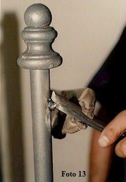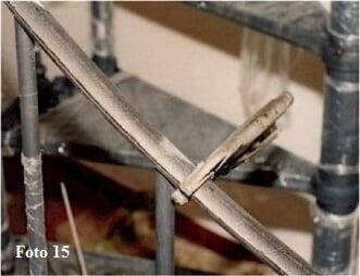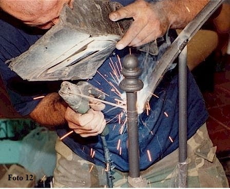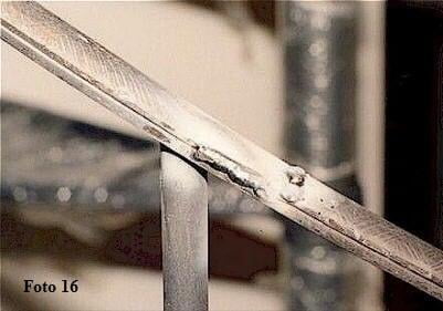 Anche qui un paio di foto, tanto per darvi una idea. Nella Foto 13 il saldatore è all'opera, nella Foto 14 si vede il corrimano ( in questo caso con il mezzotondo già posato sopra) parzialmente saldato