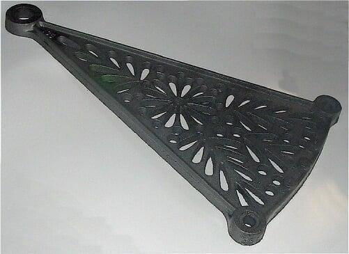 Scala a chiocciola in ghisa grigia, con pedata a disegno floreale ed alzata sagomata, di ampio diametro (210 cm), molto comoda, adatta a grandi ambienti e pavimenti solidi (una scala alta 3 metri pesa circa 900 kg.). Disponibile nel diametro 210 cm